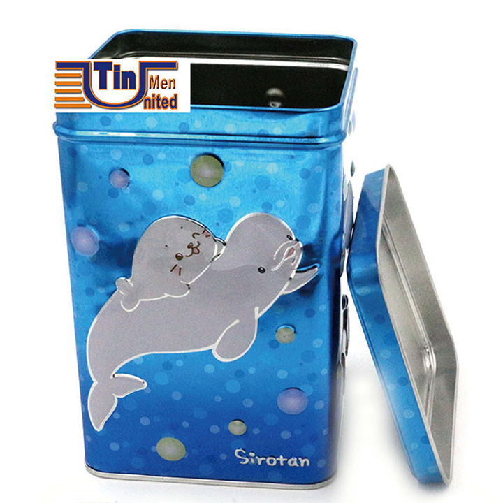 CMYK printing/Square Tin - 102x102x156mmH, promotional chocolate tins, candy packaging box |